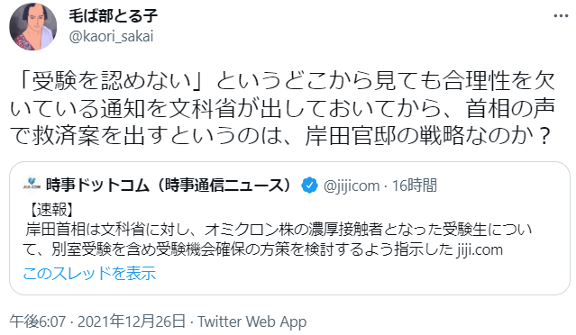 そんなことより、コロナ対策はどうしたどうした。オミクロン株の市中感染がジンワリと広がっているってのに、記者会見ではまるで傍観者のような冷ややかさでたんたんと原稿を読み上げるだけなんだよね。1ケ月も欠勤してたのだって、いまだ何の説明もないんだから、東京オリ・パラの記念式典よりも自らの政界引退式典の方が先じゃないのか。