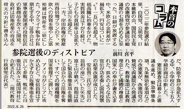 この二人、政治や経済、法律について学んだことがあるのか。法案を審議するような知識や思考能力があるのか。ちなみに、生稲晃子は候補者アンケートに以下のように返答しているらしい。