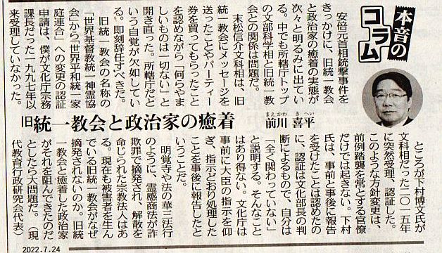 安倍に対する批判がエスカレートしたことが背景だそうだ。相も変らぬ戯言か詭弁か。安倍を殺したのは山上容疑者だ。山上を凶行に駆り立てた原因は、そんなことではない。
