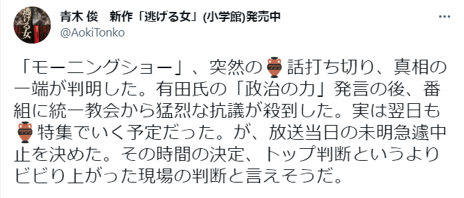 安倍暗殺事件の直後、フジテレビの平井がこんなことを言っていた。