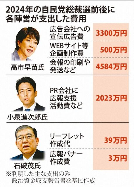 ・高市氏、宣伝費に8000万円超 24年総裁選 水面下で巨費投じる